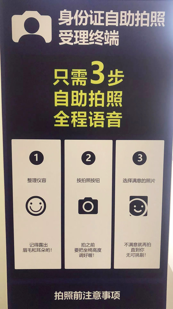 近日,在合阳县公安局党委的支持下,一台崭新的居民身份证自助拍照一体机“亮相”合阳县政务服务中心,全程办理身份证仅需3-4分钟,大大缩短了群众排队等候的时间。